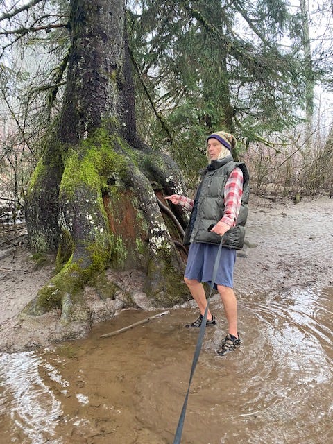 The context for me here in a wilderness-ish town in northern B.C. is my friend David is flying in to Vancouver on Friday the thirteenth to have his breastbone stuck together again. It’s drifted like an inch-and-a-half apart some months following a heart operation. His wife my cousin held her fingers two or three inches apart to illustrate this separation and she described the bone in question in culinary terms as a “brisket.”